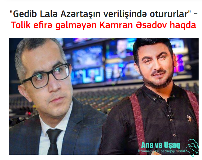Tolikin veilişinə dəvət alıbmış, birlikdə ttəhsilimizin qaranlıq tərəflərinə işıq tutacaqlarmış. Bu xəbəri oxuyanda sinirlərim tərpənmişdi ki, gör təhsilimiz nə günə qalıb. Daha sonra məlum oldu ki, veriliş baş tutub, amma o verilşdə müəllim iştirak etməyib. Sevinmişdim ki, Kamran müəllim də bz fikirləşən kimi fikirləşib, şou proqramına qoşulmayıb. Rahatlığım uzun çəkmədi, çox keçməmiş bu veriliş haqqında statuslar yazıldı, Kamran müəllim özü də danışdı. Dedi ki, mənim verilişdə iştirak etməməyim tamam başqa dəbəbdən olub. Biz Tolikin televiziyadakı reytinqinə hörmət edirik.