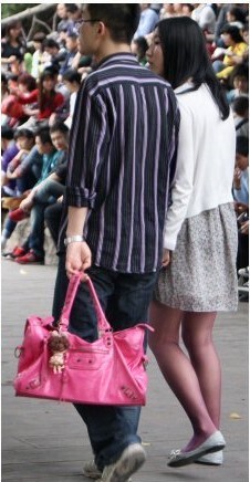 Bu anlayışın təzahürü olaraq küçələrdə tez-tez rastlaşacağınız başqa bir mənzərə də çiyinlərində çəhrayı və bənövşəyi rəngli qadın çantaları daşıyan kişilərdir. Əksər çinli kişilər çantalarını həmişə sevgililəri və ya arvadları ilə aparırlar. Çantanın böyük və ya kiçik olmasının fərqi yoxdur. Uşaqlıq dövründə qadınların və kişilərin qadın çantaları ilə gəzməsi onların cinsi rollarına görədir. Müəyyən mənada bu rollar o qədər daxililəşdirilib ki, vəziyyətin absurdluğundan xəbərdar olan çinli dostum dostluq söhbətində sevgilisinə çanta seçərkən çanta ilə güzgünün qarşısına keçdiyini deyib. xoşuna gəldi və çantanın ona necə baxdığına baxdı. Bunu deyəndə təəccüblənənlərə dedi ki, nə, o daşımır, çantanı həmişə mən aparıram, normal deyilmi? Yeni nəsillər öz bəhanələrini və ya absurdlarını bilsələr də, bu rolları davam etdirirlər.