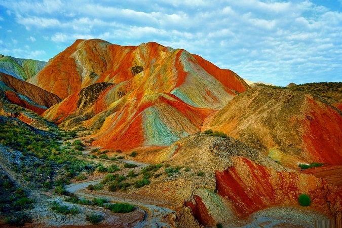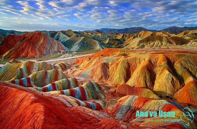 Dünyanın geoloji möcüzəsi olan “Göy qurşağı” dağları Çinin “Zhangye Danxia Geoloji” adlanan parkın sərhədləri daxilində yerləşir. Dağları dünyada məşhur edən xüsusiyyət onların üstündəki rənglərin göy qurşağı rənglərində olmasındadır. Bəs belə qeyri-adi mənzərəyə səbəb nədir?