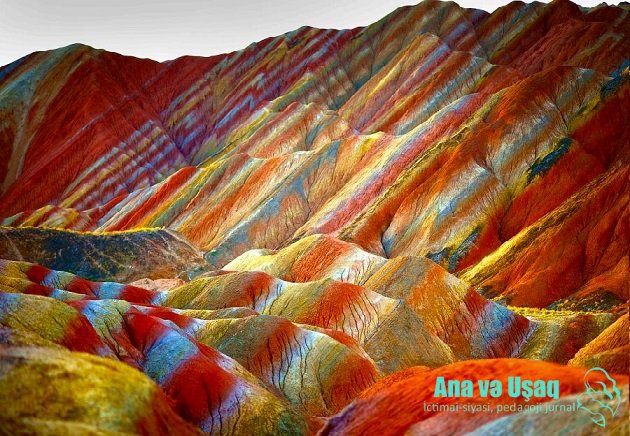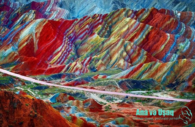 Təbii ki, dağa rəng verən, əslində, onun sinəsindəki minerallardır… Yerdə olan qırmızı, yaşıl, sarı və mavi minerallar da dağları göy qurşağı rənginə boyamışdır.