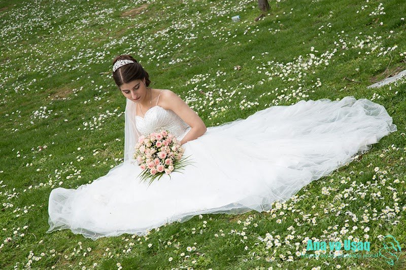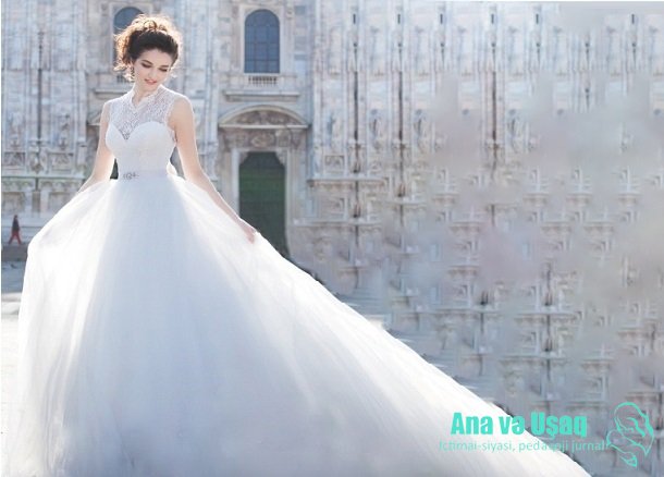Təzəcə gəlinsən ağ paltarda sən.