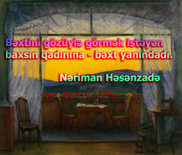 Mən bu yaşıma çıxıb Azərbaycan Qadınının istər baxışlarda, istər cəmiyyətdə nə qədər müqəddəs olduğunu görmüşəm. Buna paralel olaraq da hər qadının ərini vüqarlı. Onları belə vüqarlı edən ilk növbədə, qadınlarımız olub.