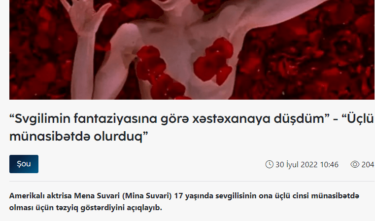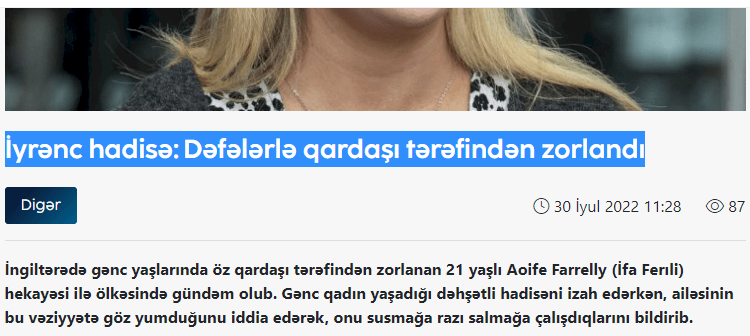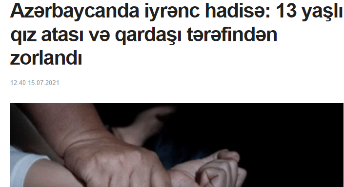 Ona görə də bir vaxt səsini yavaşca çıxardan, gedib-gələndə başını aşağı salıb öz yoluyla gedən, tanımadığı şəxslərin yanında geyiminə, oturuşuna-duruşuna fikir verən Azərbaycan qadını bu gün ağlasığmaz addımlar atır: Yeni Yasamal yaşayış kompleksində ana iki azyaşlı övladı ilə birlikdə özünü beşinci mərtəbədən atır, Bakıda Nizami rayonunun ərazisində 15 yaşlı oğlanı döyə-döyə öldürürlər, qadın tanışını bıçaqlayır, oğul anasını öldürür, qardaş bacısını qətlə yetirir və sair, yazası olsaq, sicilləmə bir siyahı yaranacaq.