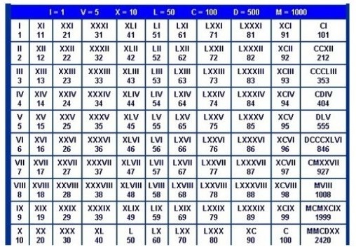 XVII=X+V+I+I=17 MCCC=M+C+C+C=1300
