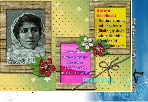 Hüseyn Ərəblinski : “Səkinə xanım, qadınsız teatr gülsüz-çiçəksiz bahar kimidir. Çiçəksiz ki bahar olmaz! Cəhalətin ucbatından nə qədər qadın, qız teatra yaxın dura bilmir. Siz böyük iş görürsünüz. Qızlarımızın ürəyində teatr qığılcımları alışdırdınız. Vaxt gələr, bu qığılcımlar məşələ dönər”…