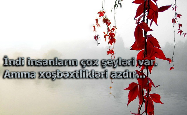 İndi insanların çox şeyləri var. Amma xoşbəxtlikləri azdır…