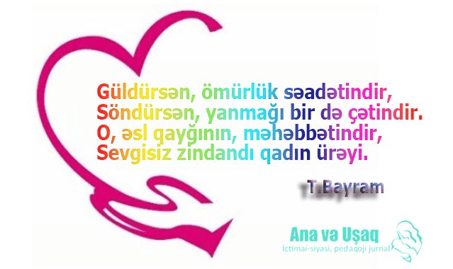 Sizə əsl Qadın-Ana səadəti arzulayırıq. Çöhrələrinizdə hər zaman bəxtiyarlığınızı ifadə edən təbəssüm görək…