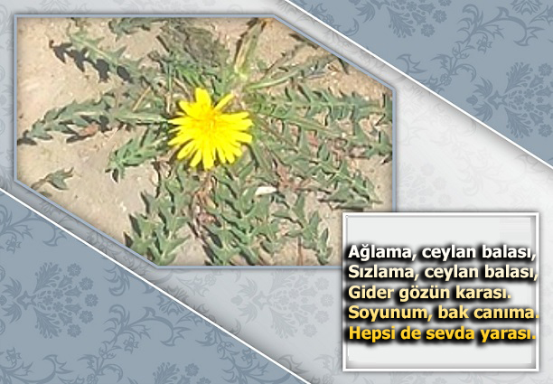 Bu və aşağıdakı çiçəklər haqqında söhbət gedən ərazilərdən dərilib və lentə alınıb. Yazı əvvəlcə həmin çiçəklərin nitqləndrilməsi ilə başlayır və sonra bizim münasibətimiz əks ounur