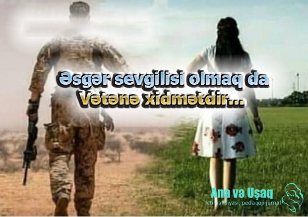 Mənim üçün əsgər sevgilisi olan qızların vəfası, sədaqəti vətənə xidmətin daha bir formasıdır. Sevən əsgərlərimiz əminliklə, arxayınlıqla xidmət etməlidir. O həmişə duymalıdır ki, Vətəndə onu Əziz Anası ilə bərabər, həm də həsrətli bir qız balamız gözləyir.