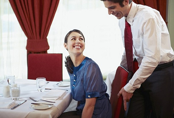 Ətrafda ofisiant yoxdursa, kişi qadına kresloda oturmağa kömək edir.
