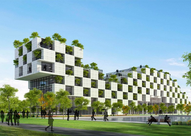 Ho Chi Minh şəhərində ağaclar azdır, ona görə də FPT Texnologiya Universitetinin kampusu onu yaşıllıqlarla bəzəmək və həyətdə bağ salmaq qərarına gəlib. “Vo Trong Nghia Architects” memarlıq qrupunun layihəsinə əsasən, fasadda dama taxtası naxışında bitkilər əkiləcək. Belə bir memarlıq həlli yalnız mənzərəni yaxşılaşdırmamalı, həm də ətraf mühiti yaxşılaşdırmalıdır.