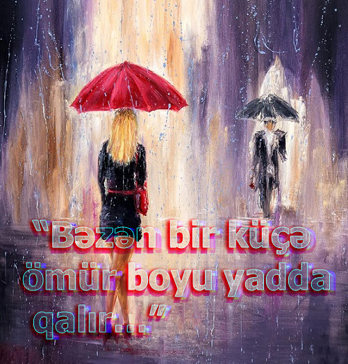 Payız niskili ilə örtülmüş yağışlı küçədən keçən sevgi – iki addım yaxınlaşa bilməyən, amma baxışları görüşən iki insan. Şeirdə küçə məkan olmaqdan daha çox “sevginin sükutu” assosiativliyini doğurur. Onlar irəlilədikcə , sevgi də addımlarının izində qalır…