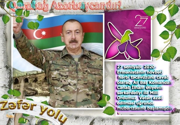 Ölkə başçısı cənab İlham Əliyyevin uğurlu siyasəti, qətiyyəti və müdrikliyi nəticəsində biz Zəfər tarixinə yol başladıq. Müzəffər ordumuz Ali Baş Komandanın əmri ilə Vətənimizi işğaldan azad etməyə başladı.