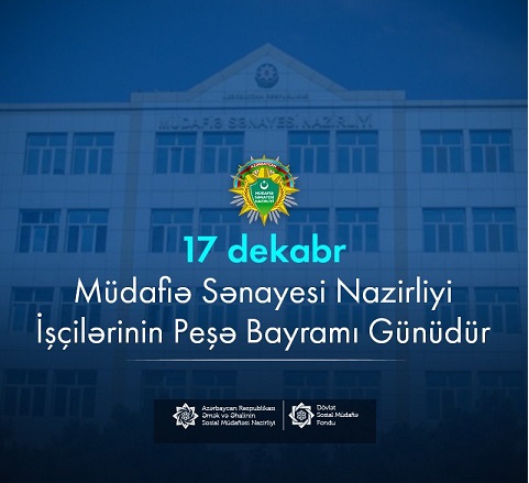 17 dekabr Müdafiə Sənayesi Nazirliyi işçilərinin peşə bayramı günüdür.